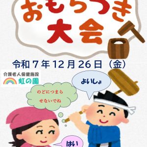 2025年11月21日 お知らせ 12月26日(金)に『おもちつき大会』を行います。お楽しみに。