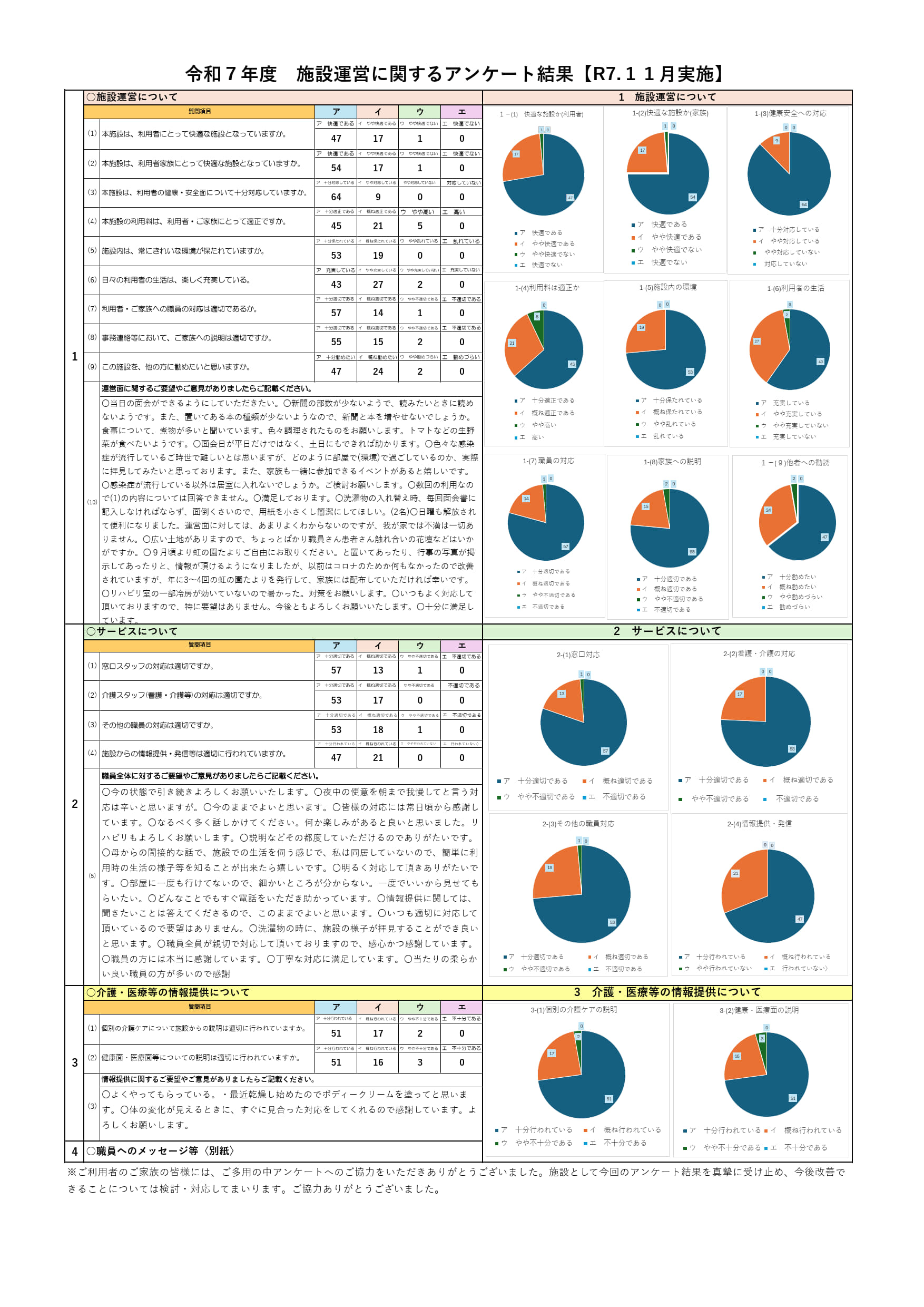 本年度、ご利用者のご家族のご協力をいただき実施いたしました、『虹の園施設運営アンケート』