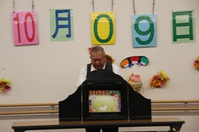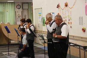 虹の園では、新型コロナウイルスによる脅威から解放された本年度より、従来どおりに施設行事の運営を再開しました。そこで、本年度の皮切りとして10月9日(木)に、市内のボランティア団体である『大越 ハーモニークラブ』の皆様による演奏会と紙芝居を実施しました。