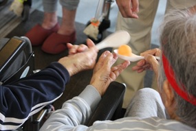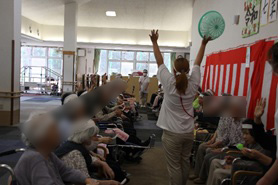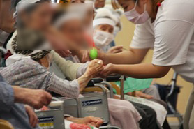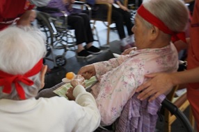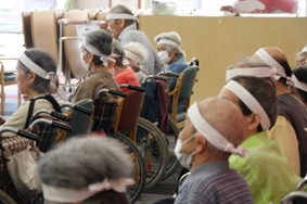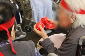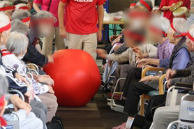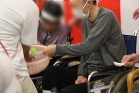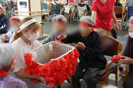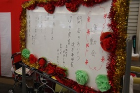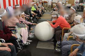 施設周辺の田んぼでは、稲刈りも終わりいよいよ秋本番の気候となりました。 虹の園では、10月12日(日)に、施設内において運動会を行いました。利用者の皆さんは、赤組と白組に分かれて、各自がハチマキを締め、赤組と白組の代表選手による選手宣誓が行われ競技が開始されました。行われた競技は、『スプーンリレー』『大玉送り』『玉入れ』『スリッパ飛ばし』の4種目です。 競技を通して、利用者の皆様の真剣さと熱量を感じ、競技終了後勝敗が決した時の歓喜のバンザイは喜びの笑顔に溢れ、とてもよい運動会となりました。